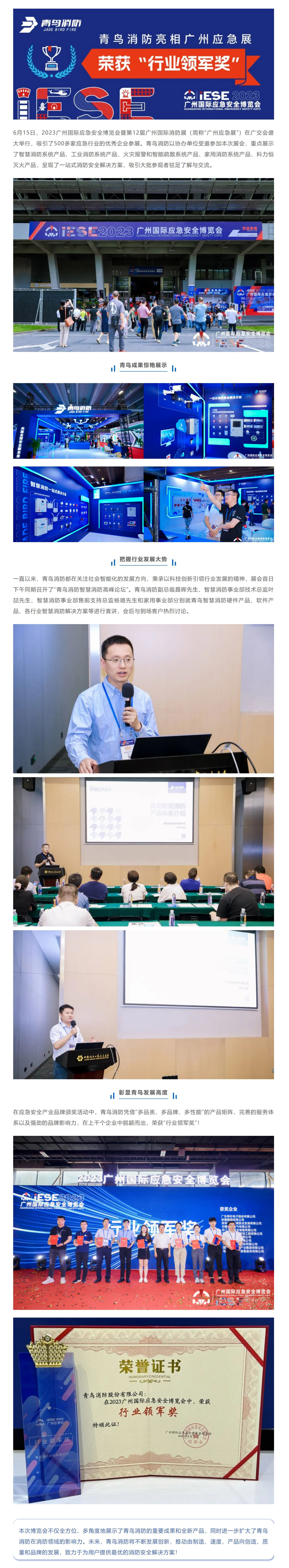 青鳥消防亮相廣州應(yīng)急展 榮獲“行業(yè)領(lǐng)軍獎(jiǎng)”